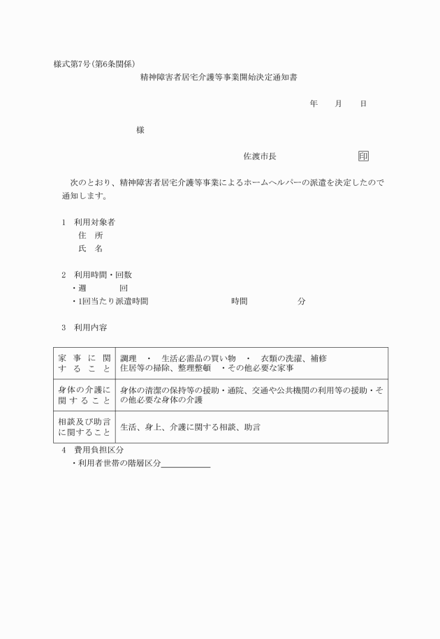 ○佐渡市精神障害者居宅介護等事業運営規則