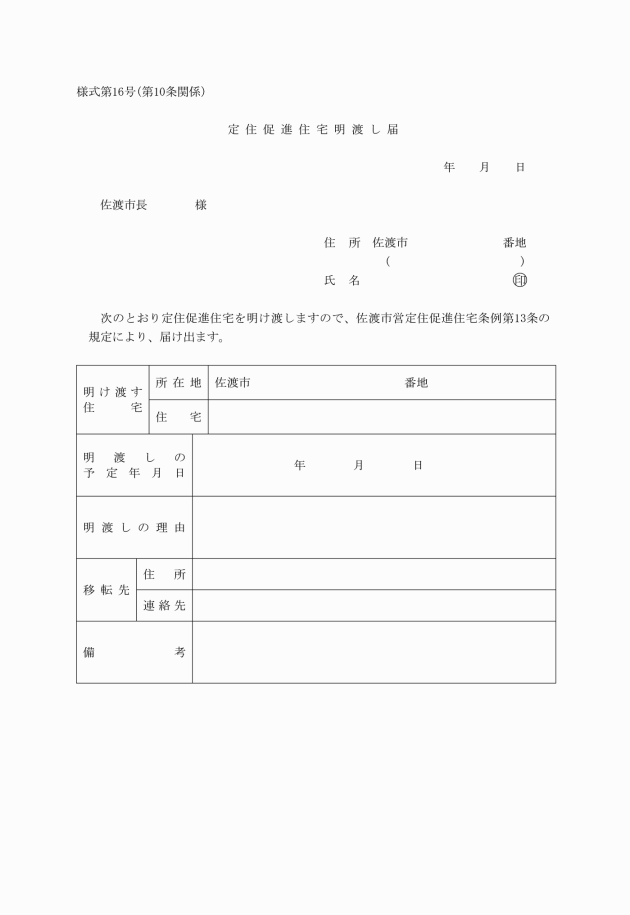 ○佐渡市営定住促進住宅条例施行規則