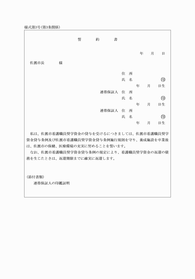 第7条 奨学生は、奨学金の貸与が終了したときは、貸与を受けた奨学金借用証書(様式第9号)を連帯保証人と連署の上、直ちに市長に提出しなければならない。