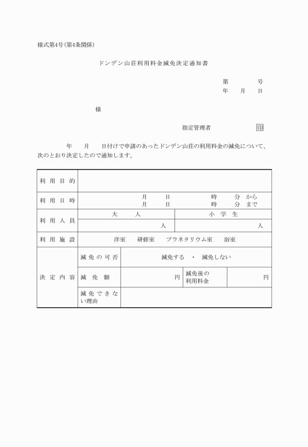 ○佐渡市ドンデン山荘の設置及び管理に関する条例施行規則