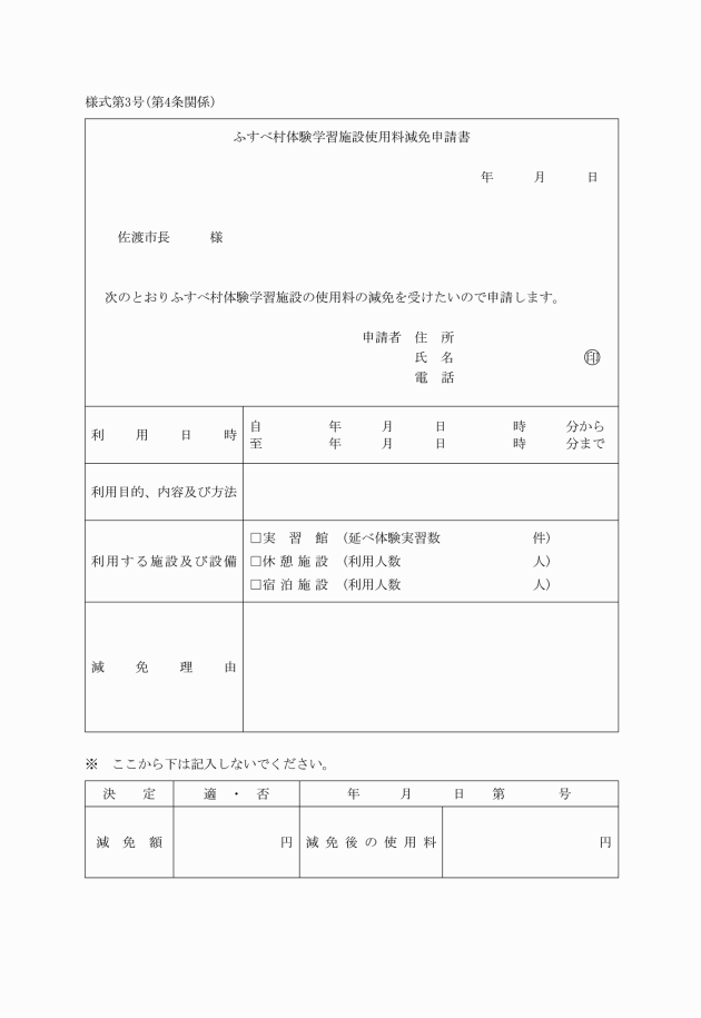 ○佐渡市ふすべ村体験学習施設の設置及び管理に関する条例施行規則