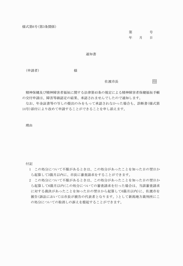 ○佐渡市精神障害者保健福祉手帳交付実施要綱