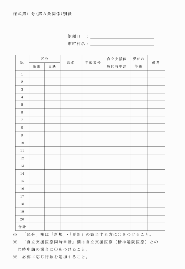 第3条 市長は、医師の診断書が添付された申請について、手帳の交付の可否及び障害等級の決定をするためには、様式第11号により新潟県精神保健福祉センター所長(以下「精神保健センター所長」という。)に判定を求めなければならない。