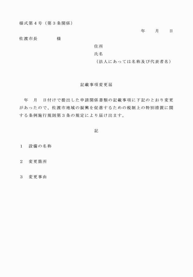 ○佐渡市地域の振興を促進するための税制上の特別措置に関する条例施行規則