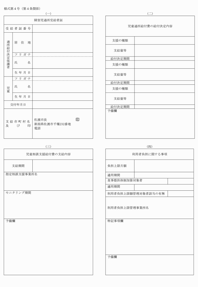 4 法第24条の26第1項に規定する障害児相談支援対象保護者は、障害児支援利用計画の作成を依頼する事業所が決まり次第、速やかに障害児相談支援依頼(変更)届出書(様式第26号)を市長に提出するものとする。事業所を変更する場合も、同様とする。
