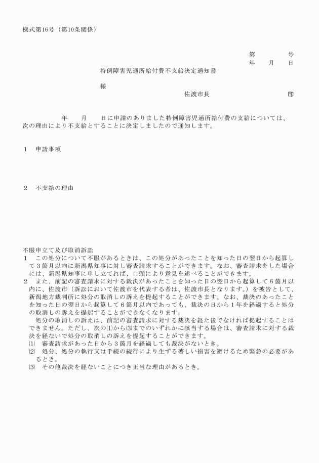 第2条 法第21条の5の6第1項の規定による通所給付決定の申請は、障害児通所給付費支給申請書兼利用者負担額減額・免除等申請書(様式第1号)によるものとする。