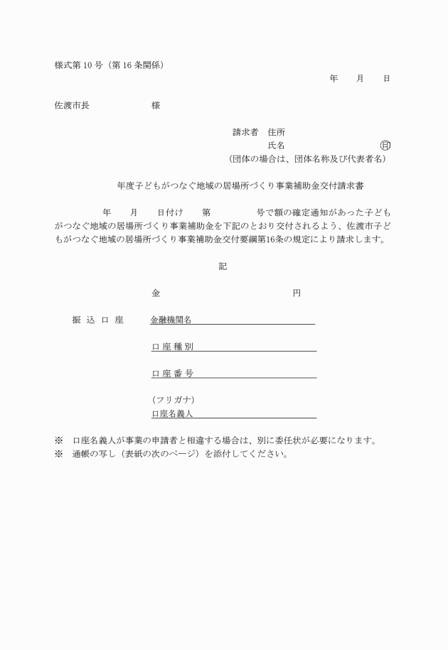 第7条 NPO団体等は、補助金の交付を受けようとするときは、子どもがつなぐ地域の居場所づくり事業補助金交付申請書(様式第1号)に関係書類を添えて、市長に提出しなければならない。