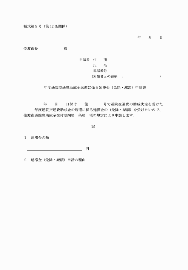 第5条 助成を受けようとする者(以下「申請者」という。)は、通院交通費助成申請書(様式第1号)を市長に提出しなければならない。