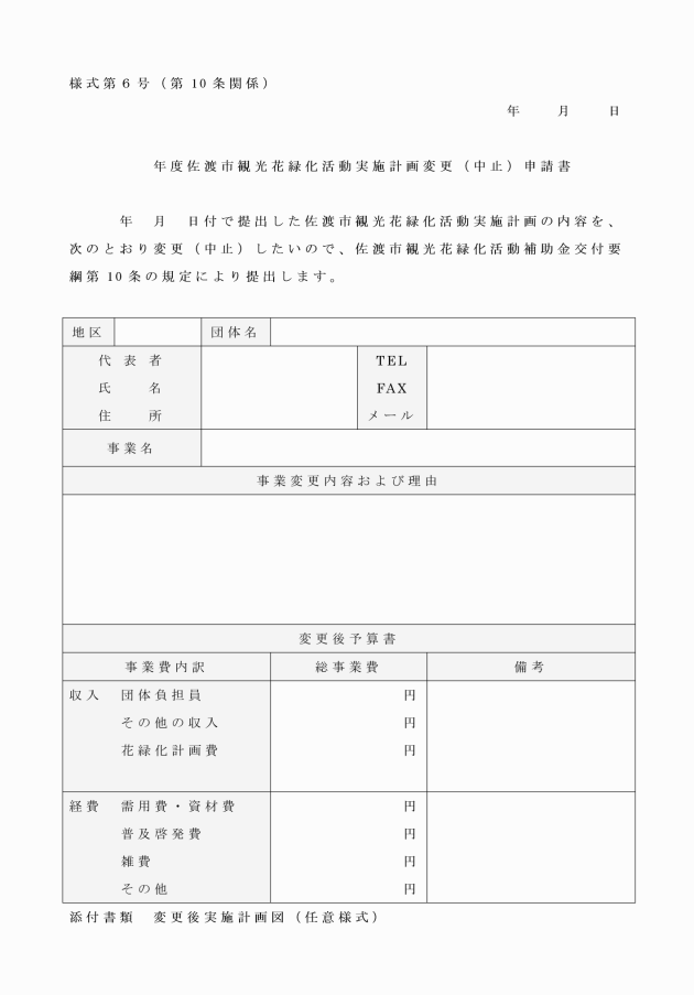 第6条 申請者は、当該事業を実施する前に佐渡市観光花緑化活動実施計画書(様式第1号)を、市長に提出しなければならない。