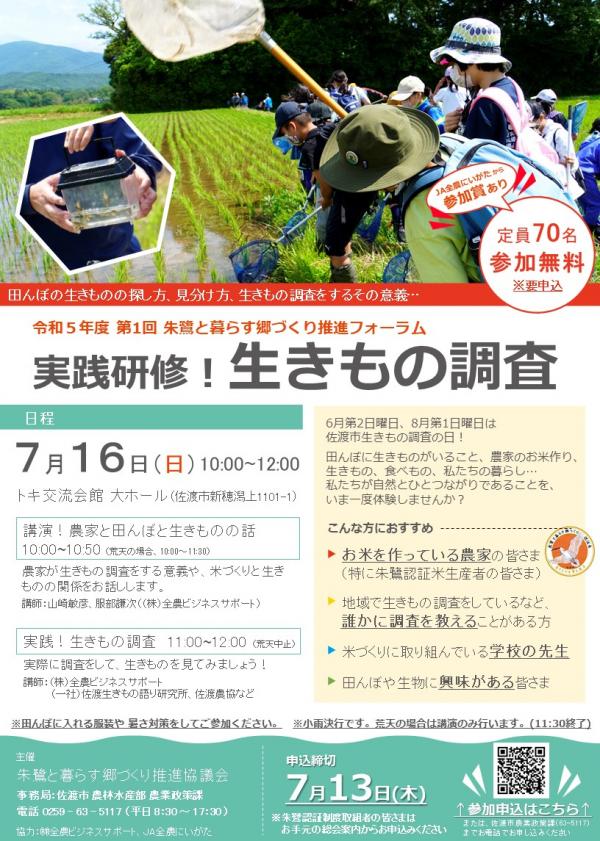 フォーラム「実践研修!生きもの調査」、R5年度朱鷺協総会を開催します