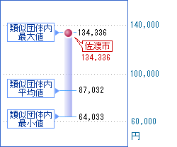 - 類似団体とは、人口や産業構造等によって全国の市町村を35のグループに分類した結果、佐渡市と同じグループに属する団体を言います。